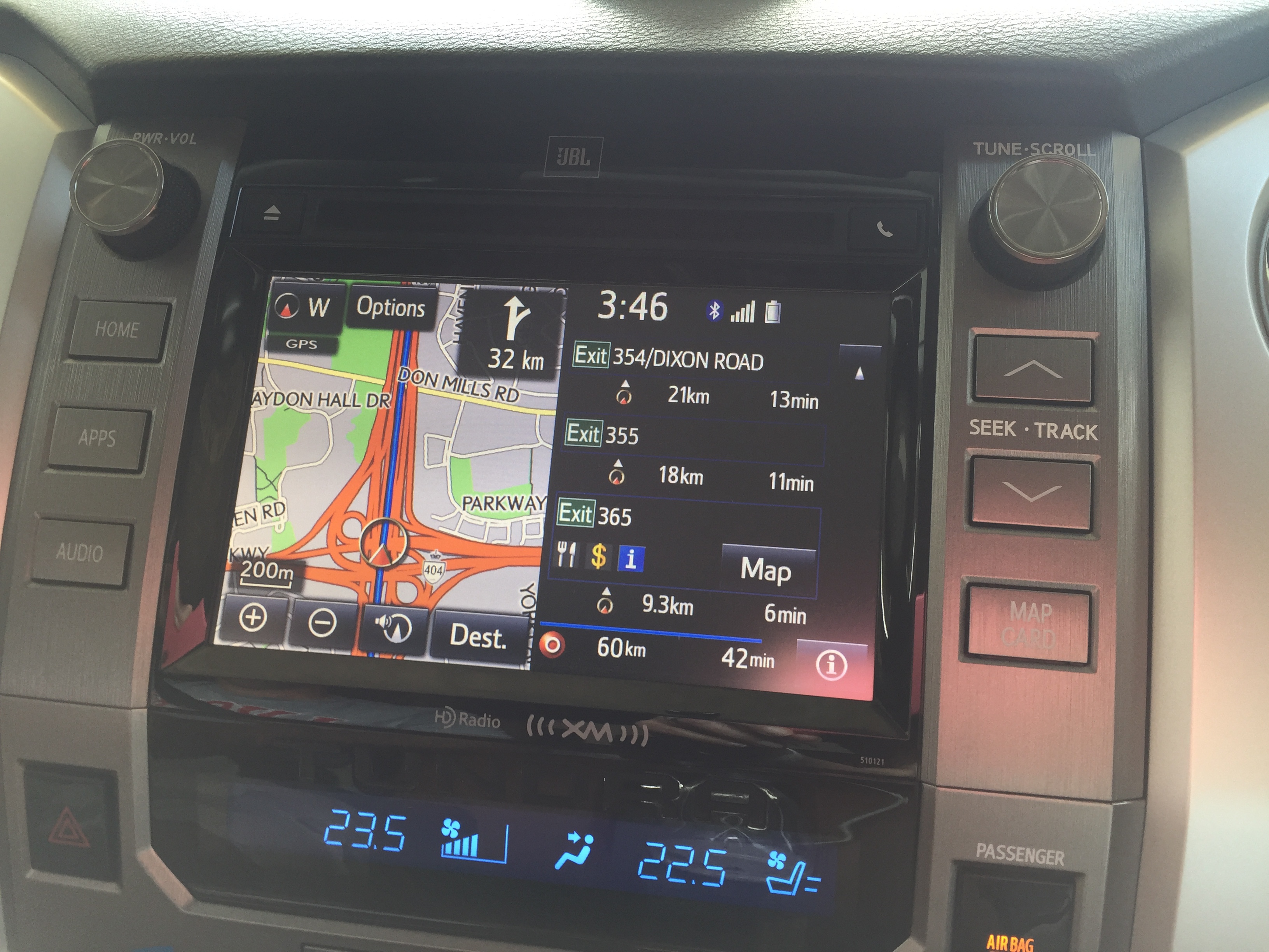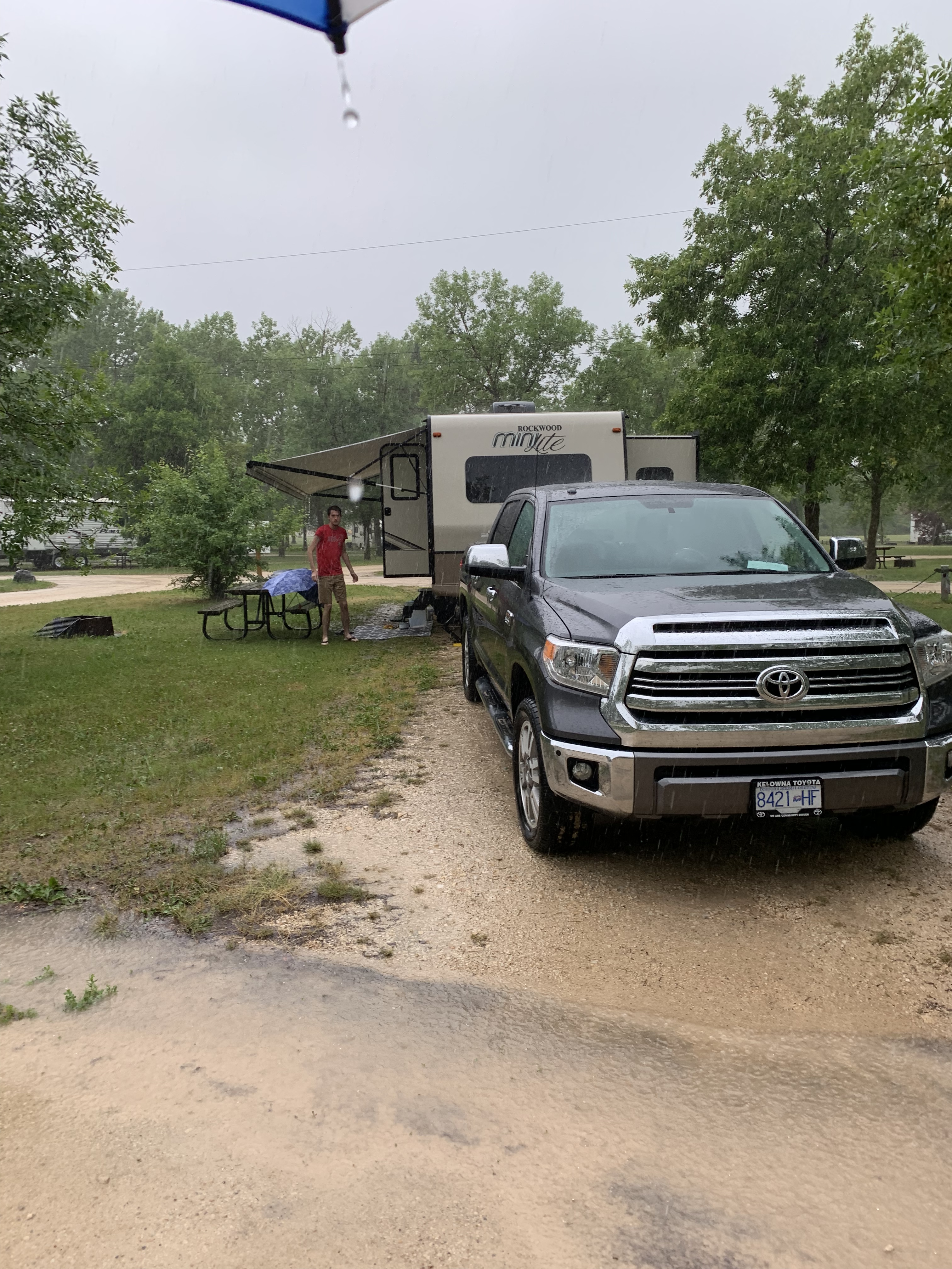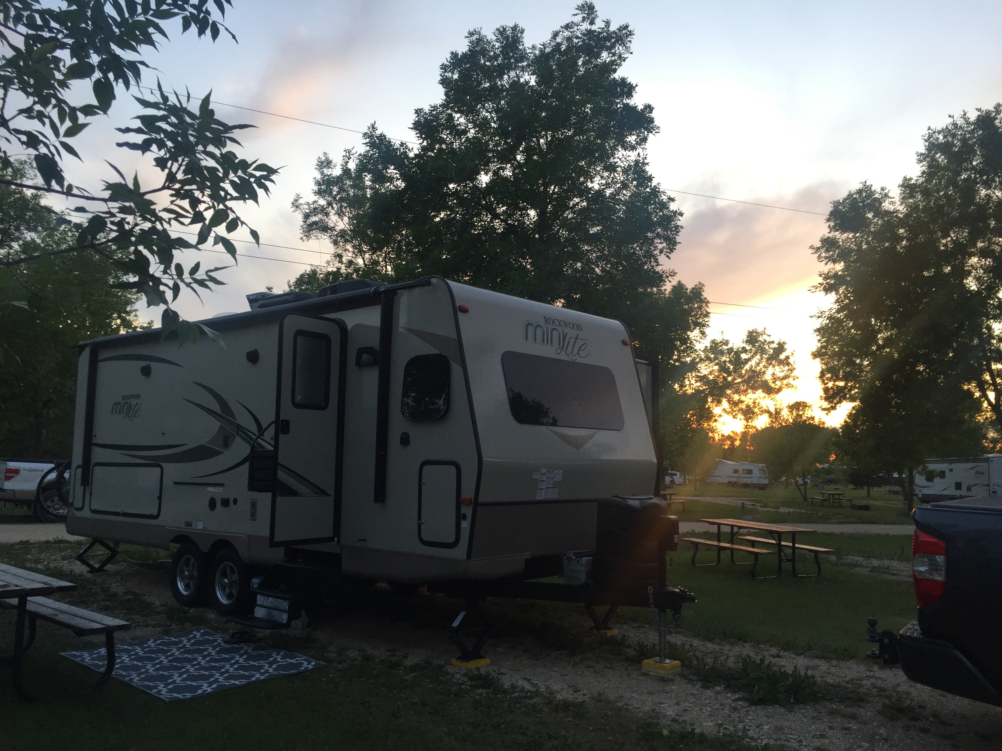 For this trip we traded the Tundra for a hybrid Ford F150 pulling a 30 foot Rockwood Ultralite travel trailer. While the hybrid Ford is much better on gas around town (11 to 12 litres per 100 kilometres), it’s not stellar when pulling a 30 foot trailer (19 – 23 litres per 100 kilometres). On top of that, the truck is chock full (back seat of the cab included) of goods we are delivering to New Brunswick. We are a little bit heavier this time around.