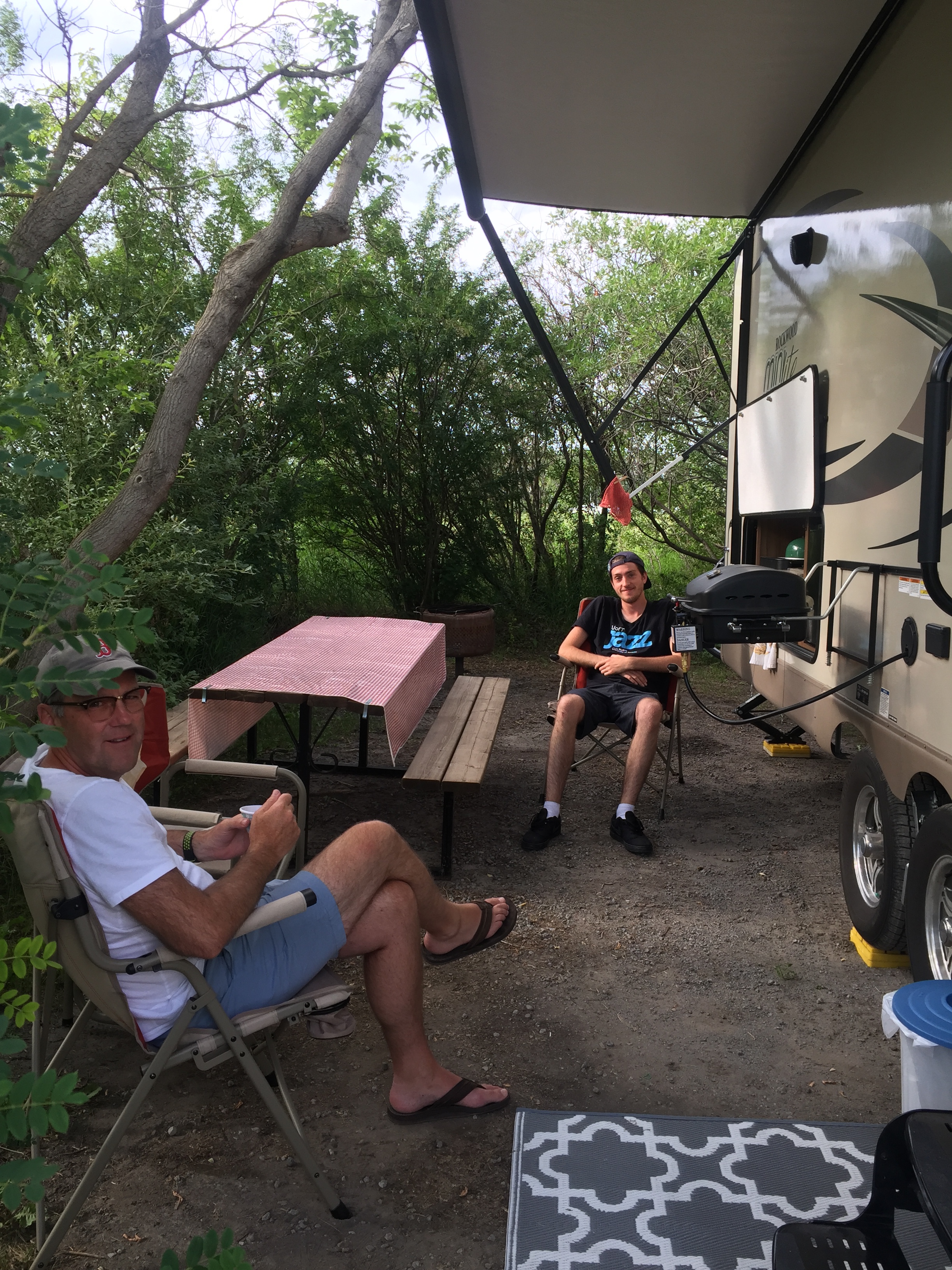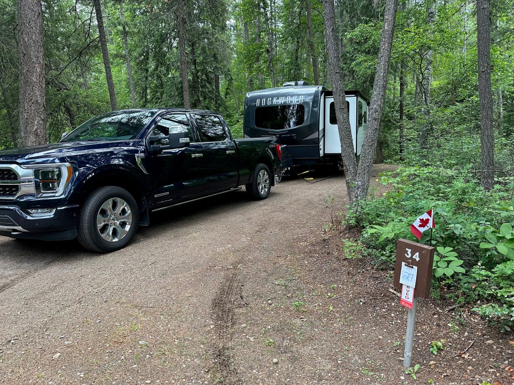 Today, after saying our goodbyes to Zach and following my virtual Board meeting (same Board), we got on the road and headed toward our first stop, North Thompson River Provincial Campground, located on the Yellowhead Highway.