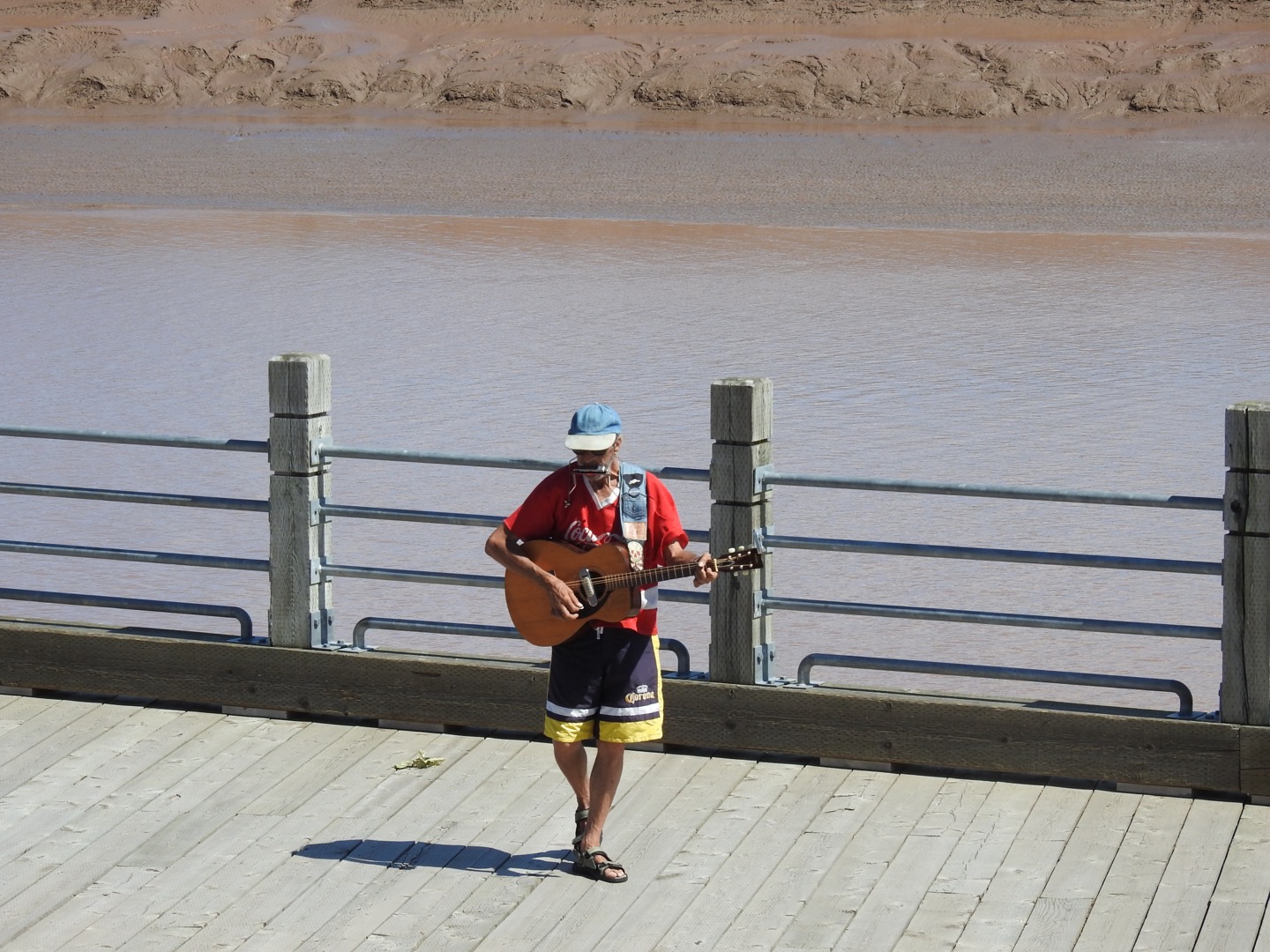 We left Hopewell Rocks and drove to Moncton to watch the phenomenon called the Tidal Bore. As the tide comes in to the Bay of Fundy, the water enters the narrow Petitcodiac River channel and by the time it reaches Moncton (some 40 kilometers), it is moving pretty fast and high. The locals told us these days it reaches between 3 and 5 feet depending on the moon. However, in the 60’s it used to be 10 and 15 feet high – that would be quite a sight.