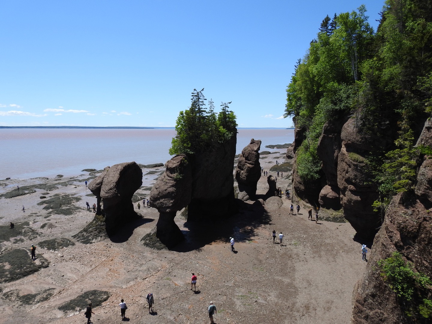 I said how much I appreciated the low gas prices here ($1.17 per litre) and told him that where Ethan lives in the lower mainland, he often pays more than $1.70. ‘That’s just not right!’, says Bernie. ‘This is one country and we should pay one price for gas’. Rather than ask how much that should be I let the topic drop. However, I did mention the poor state of the roads in Quèbec. Bernie said, well you know why that is? It’s because the mafia gets all the road building contracts and they don’t use the money to build many roads!. I could chat with Bernie all day but we did need to go, so I wished him and his wife all the best and we headed out for a visit to Hopewell Rocks on the Bay of Fundy.