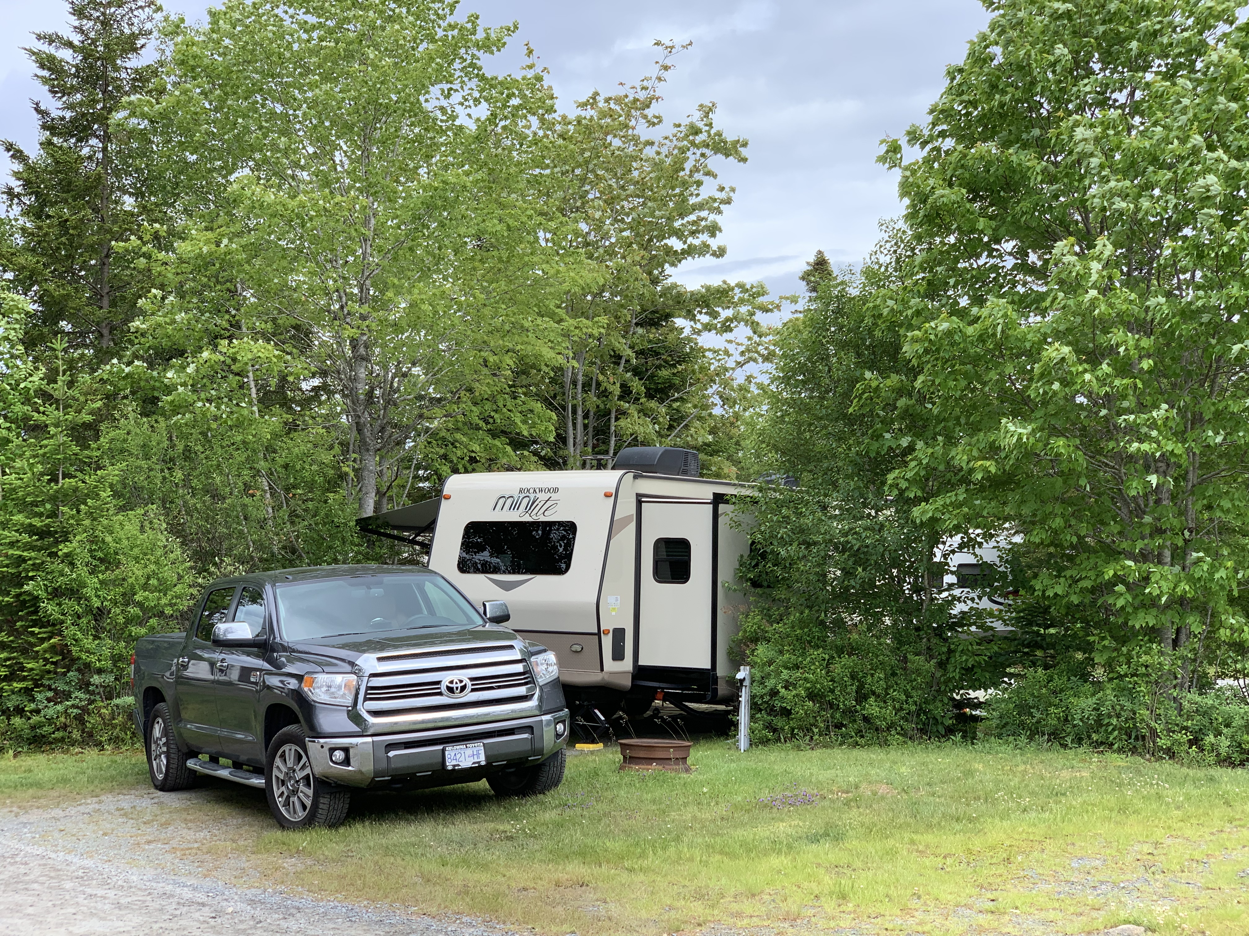 Mid morning I decided to meet the neighbors. Bernie is from Bathurst, New Brunswick and he too drives a Tundra – same year as ours but a supercab and long box. This is his 5th one and he absolutely loves Toyota (he and his wife also have a Yaris to bomb around town in). Amazingly, he tows a 25 foot Citation 5th wheel with his Tundra. Anyways, we got to chatting…you know the campground chatting…and he tells me they are in Moncton because his wife is going through cancer treatment. She just finished her last chemo treatment and today has an appointment with the specialist to see if she needs radiation – she hopes not. They are both charming and we talked for about 45 minutes. I just love talking to eastern Canada folk.