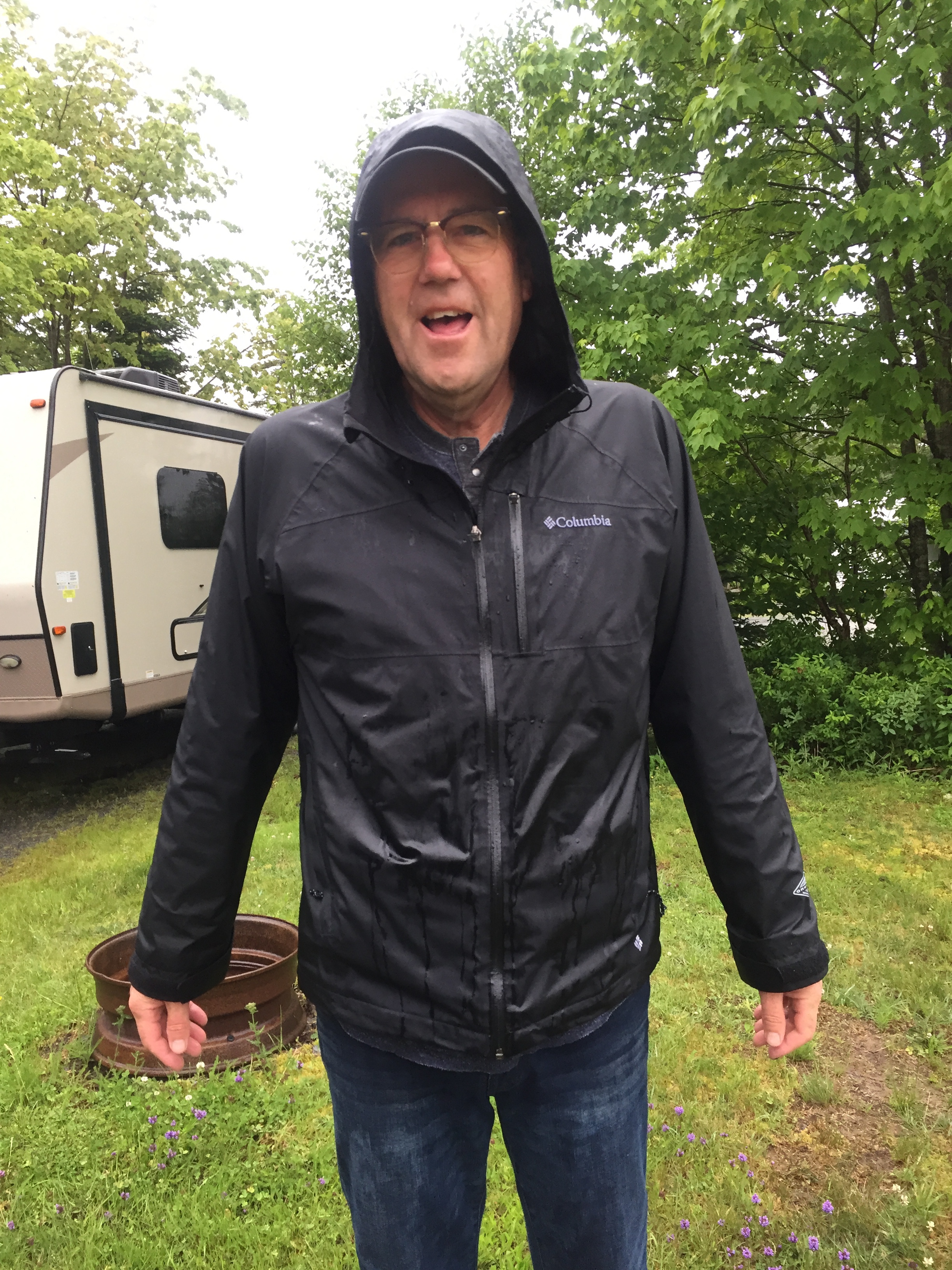 As it turns out, I was right – I know there is a first time for everything! I was busy packing up and about 1/2 done when the skies opened up and the rains began to pour. We basically packed everything critical up in the pouring rain, so everything was soaked through. After all was done, here is a photo of me – drenched.