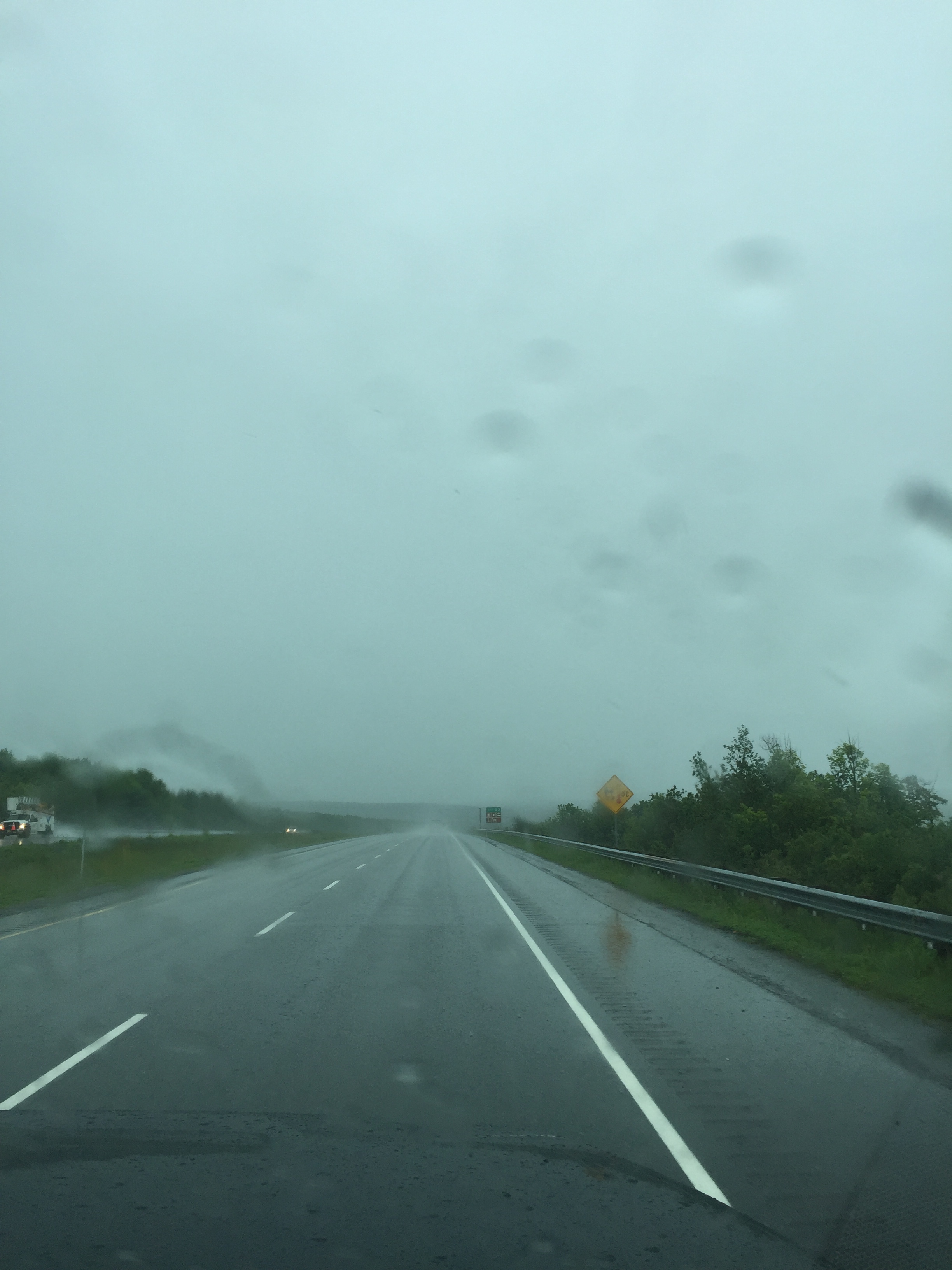After leaving Fredericton, we headed towards Edmonston, where we will spend one night before moving on to Montreal. On the way, we encountered a massive thunderstorm, first with pounding rains and then with hail. The hail was so loud, we were yelling at each other in the truck and couldn’t hear a thing.