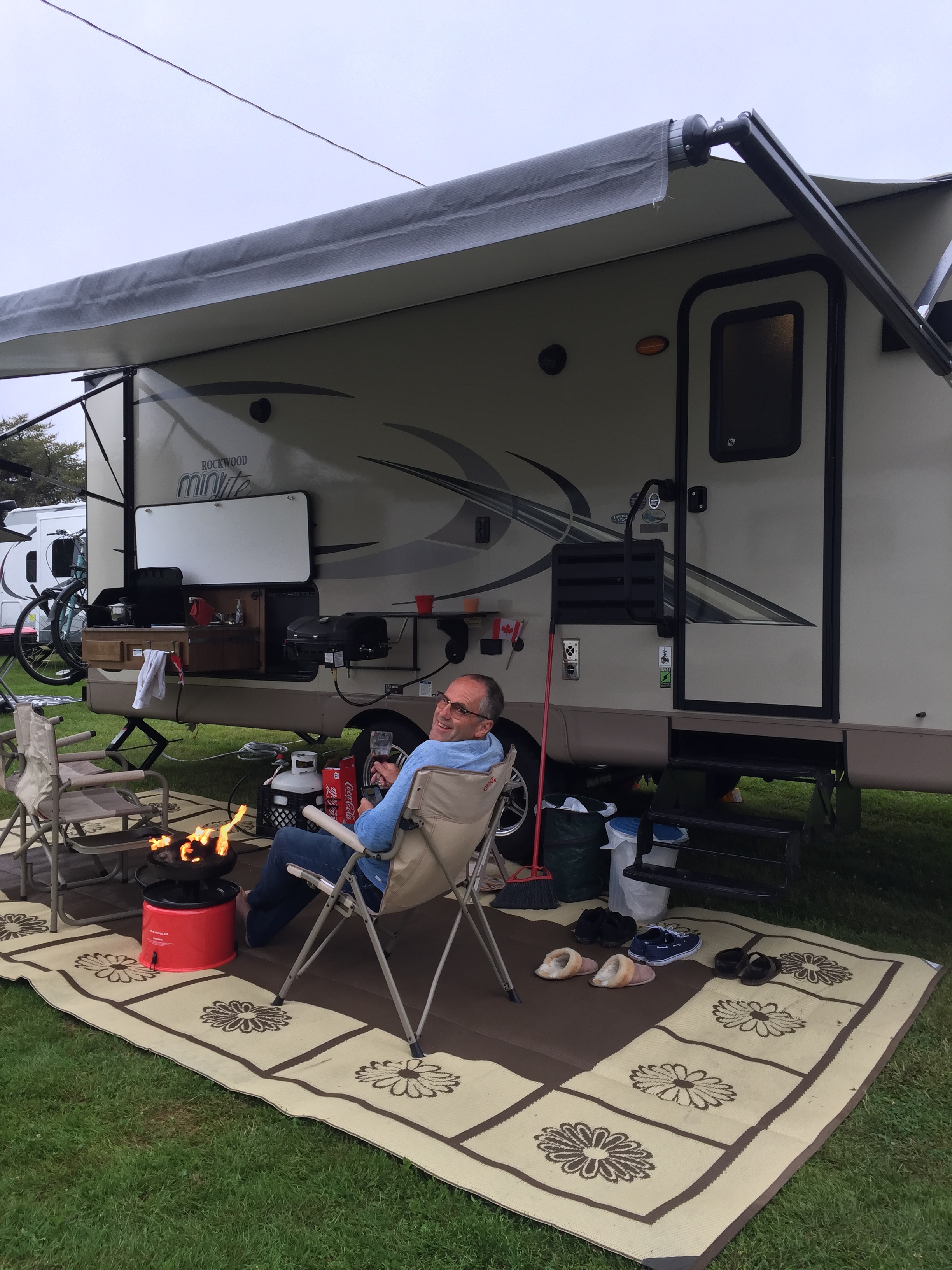 When we returned to the campsite, Connie put another choice Atlantic Salmon on the BBQ. While dinner was cooking, I chatted with the neighbours who commented about us being a long way from home. I responded by commenting on the weather being colder than I expected. They responded with, “yes it is a little colder than we expected too!”