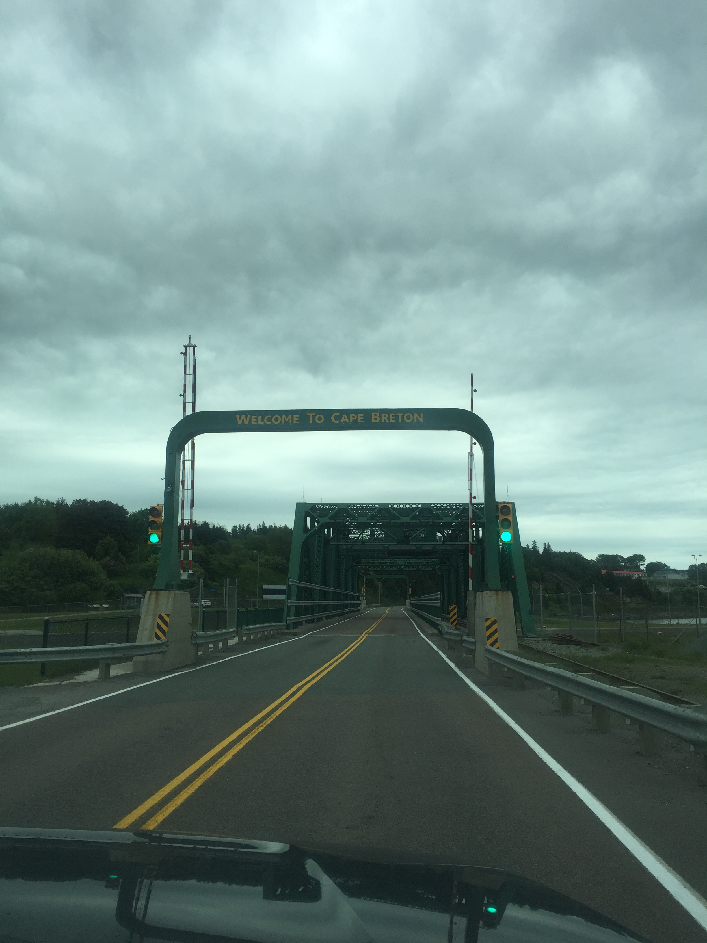We made good progress and were on the road by 830am. Unfortunately, my coffee was nearly cold but I drank it anyway. We were making good time, the rain had ceased to a drizzle and the traffic was light – perhaps due to it being Sunday morning. There was nothing much out of the ordinary as we made our way to the Canso Causway (the man made connection between Cape Breton and Nova Scotia. Along the way, we saw three cars without plates or noticeably posted temporary permits! Two looked new and one was rather full of gentlemen (I’m being generous here) who looked like they were up to some mischief. Shortly thereafter we saw in the distance the flashing lights of a police car. I thought well one of these cars got nabbed. As we approached, I noticed the car pulled over had a license plate. Go figure!