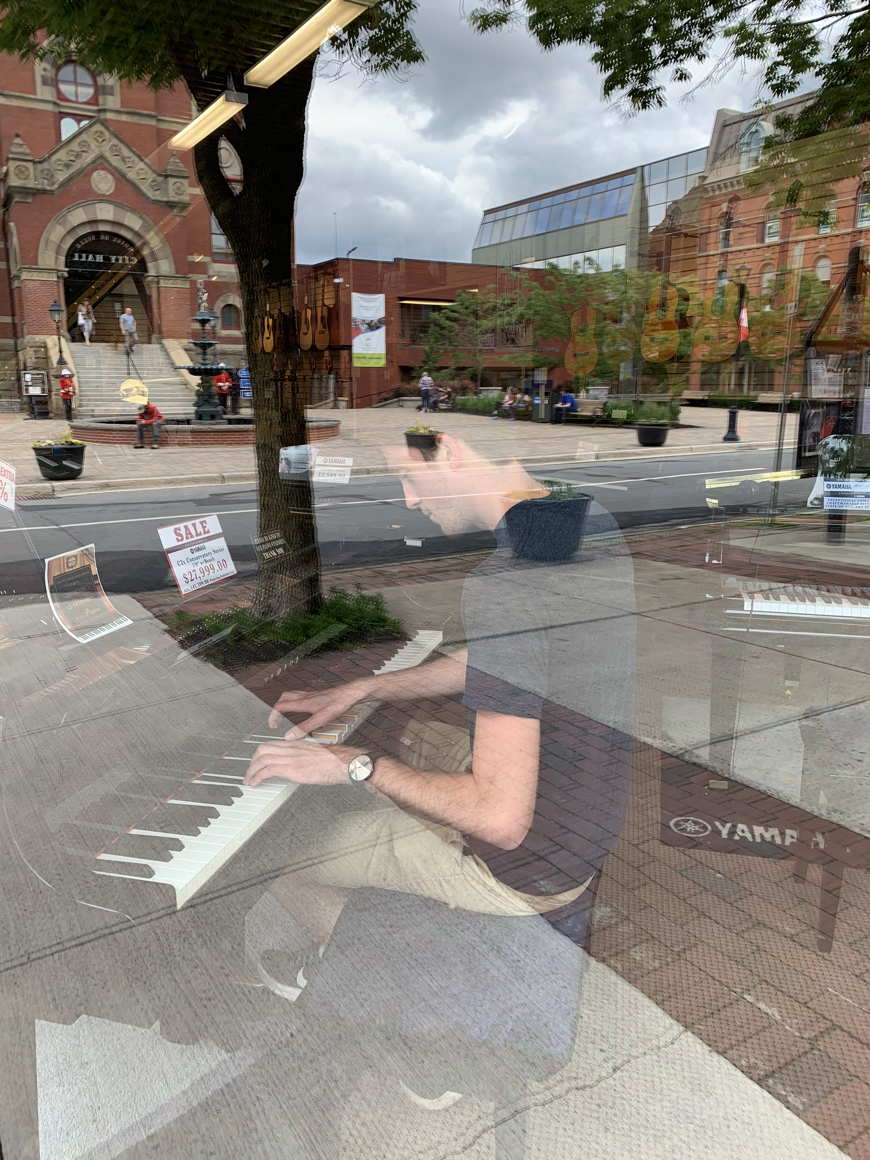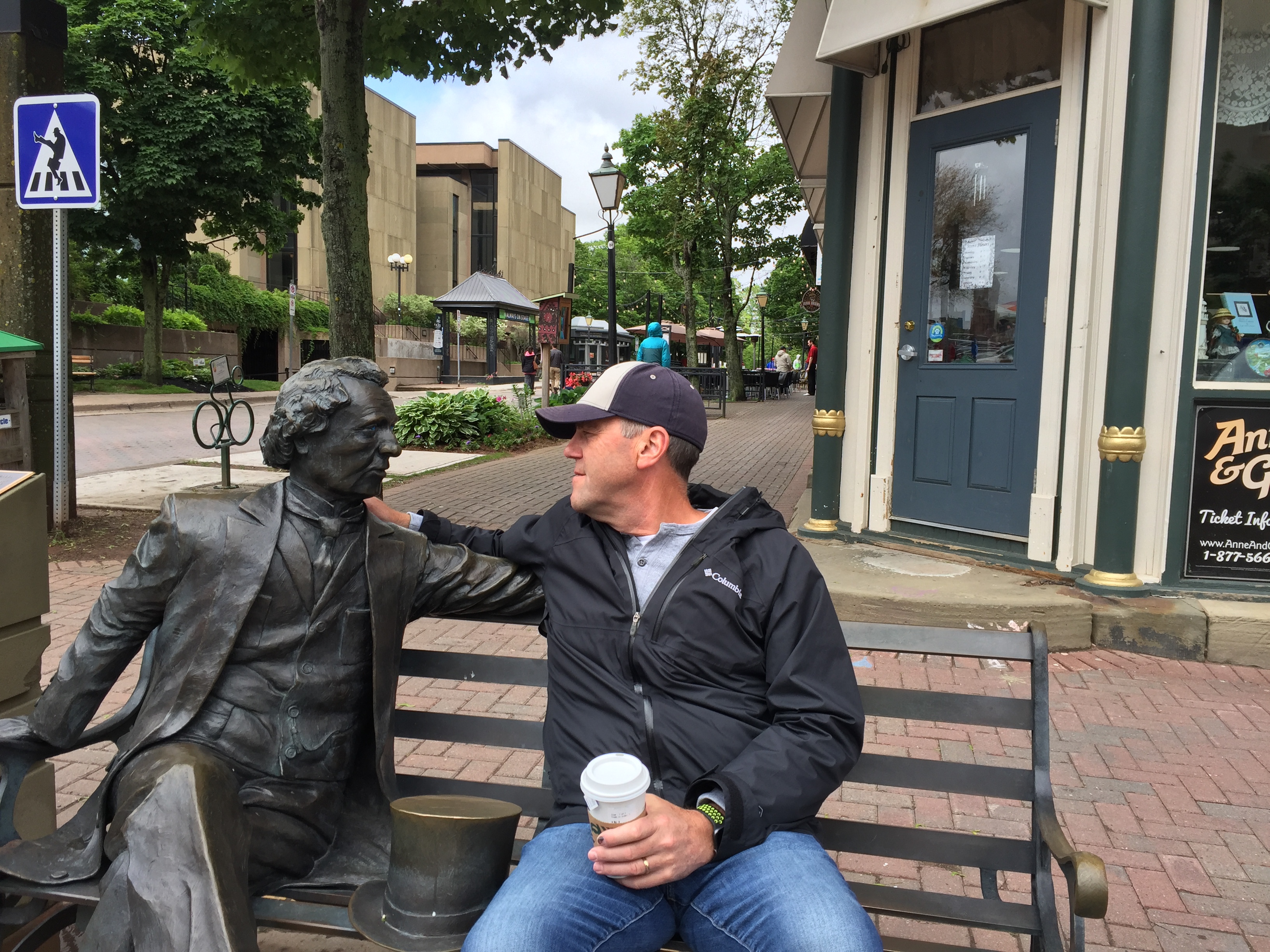 After a quick change of clothes, we returned downtown Charlottetown to have lunch at an Irish pub. Following lunch we walked around town some more, visited some shops, walked to the waterfront, Zach played a very out of tune piano (I think it might be the rain), and later I sat and chatted with Sir John A MacDonald.